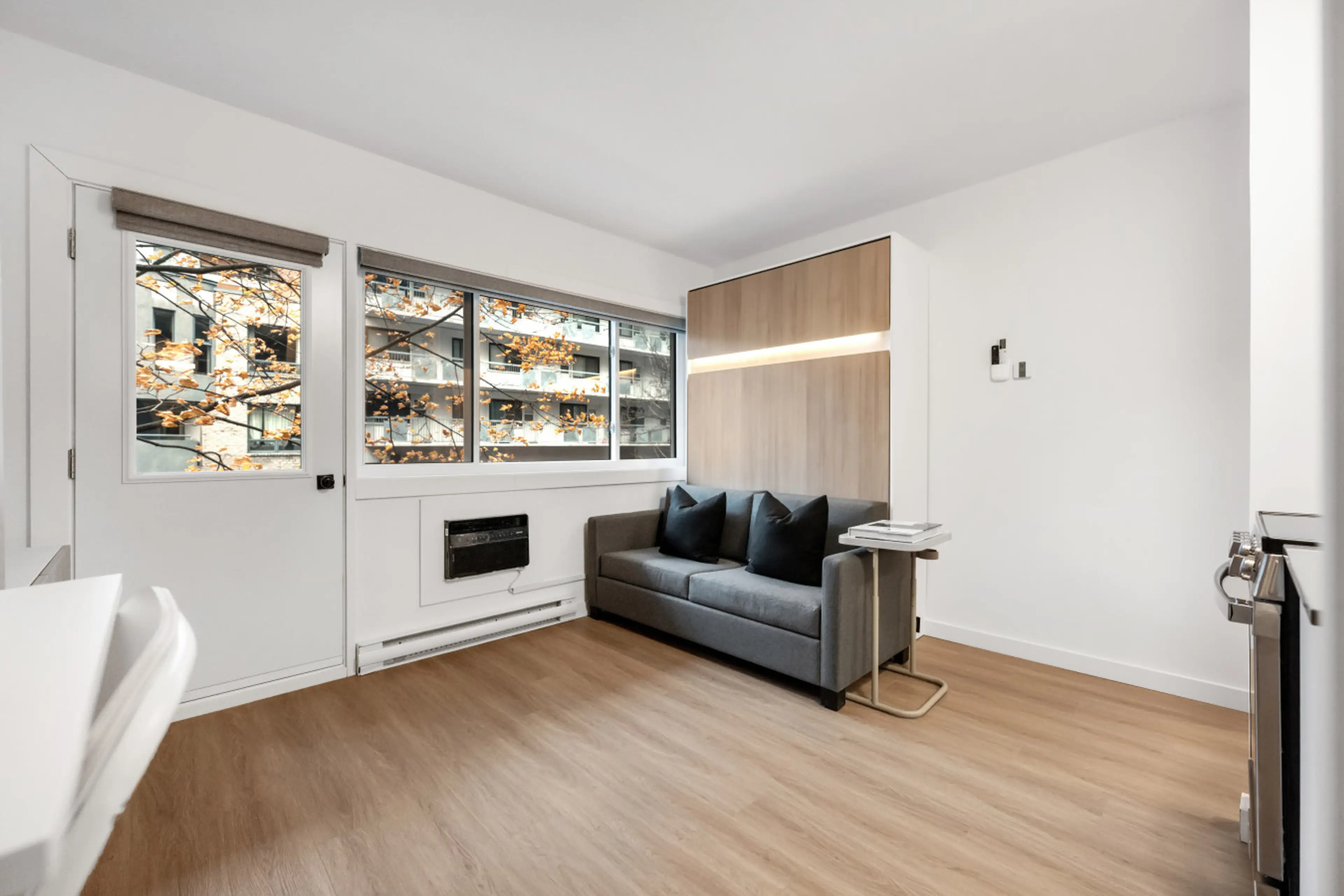 Stay in a smartly designed, fully furnished studio loft suite with a comfortable queen Murphy bed and an extra-comfort sofa—ideal for professionals, relocations, and extended stays of 31+ days. Designed for efficient living and remote work, the studio offers free high-speed Wi-Fi, Smart TV, air cond...