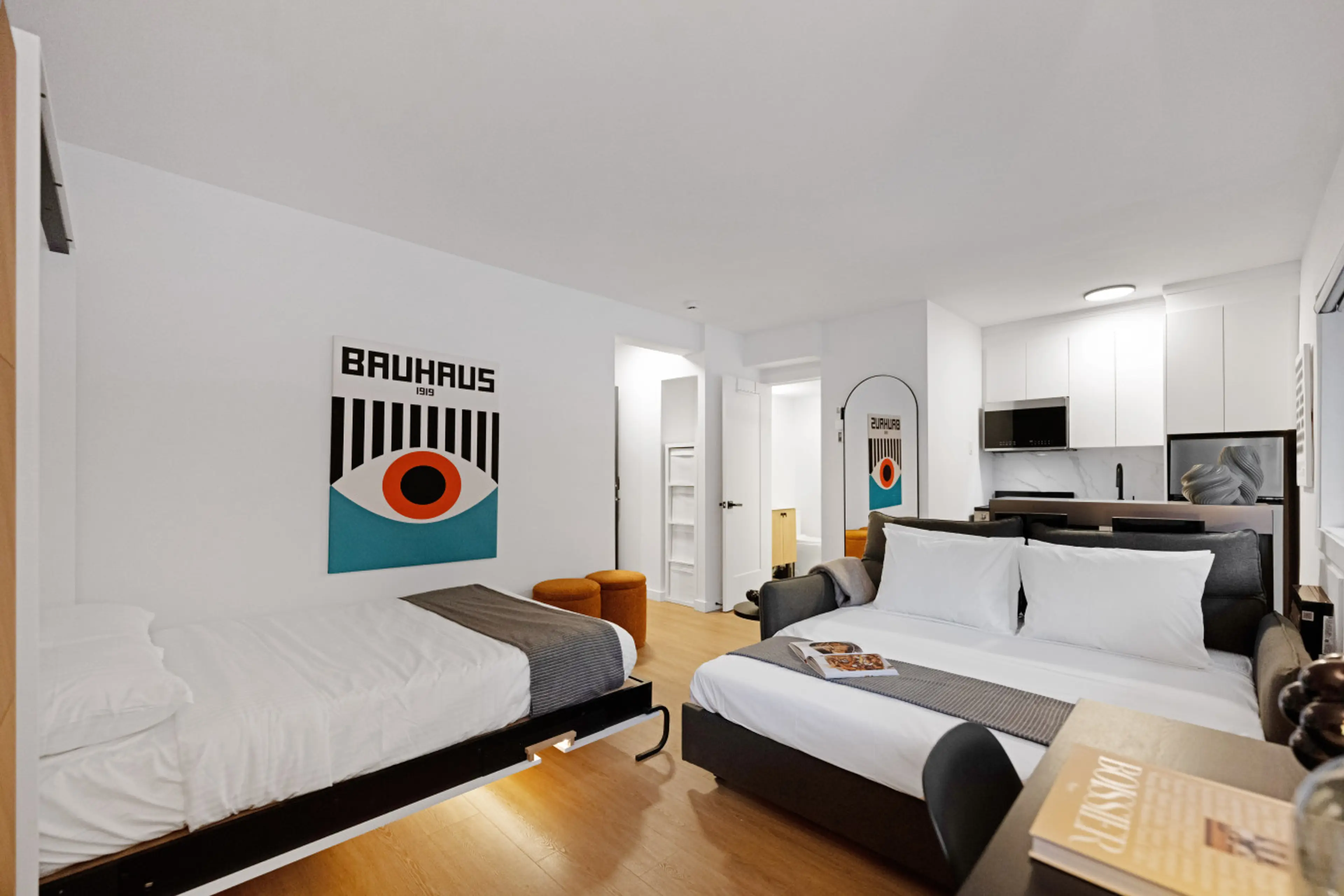 Stay in a spacious, fully furnished loft suite with smart design, featuring a queen Murphy bed and a comfortable queen sofa bed—ideal for professionals, relocations, and extended stays of 31+ days. Designed for long-term living and remote work, the loft offers free high-speed Wi-Fi, Smart TV, air co...
